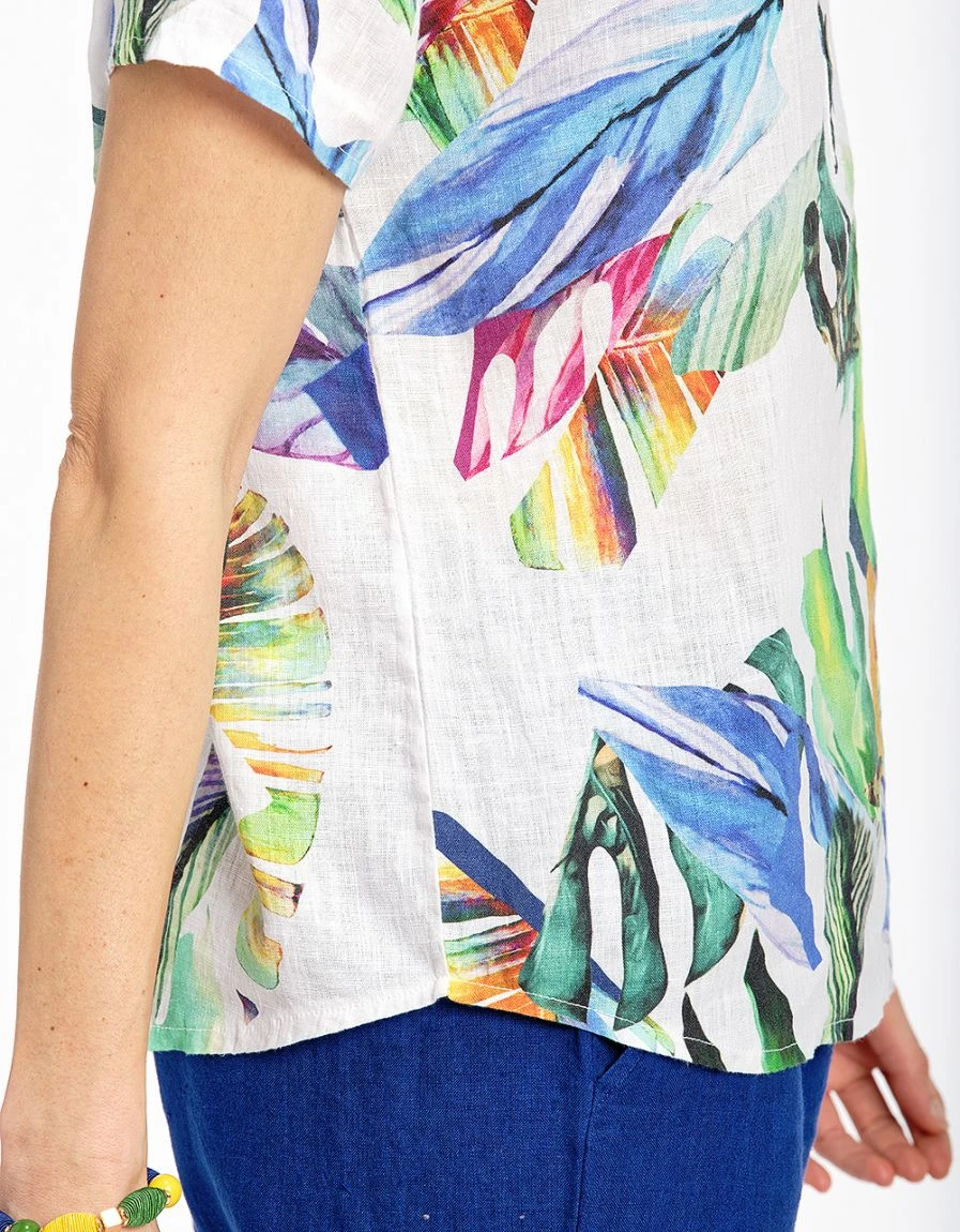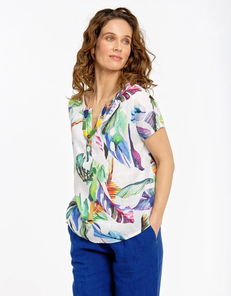– Blouse 100% lin blanche imprimée
