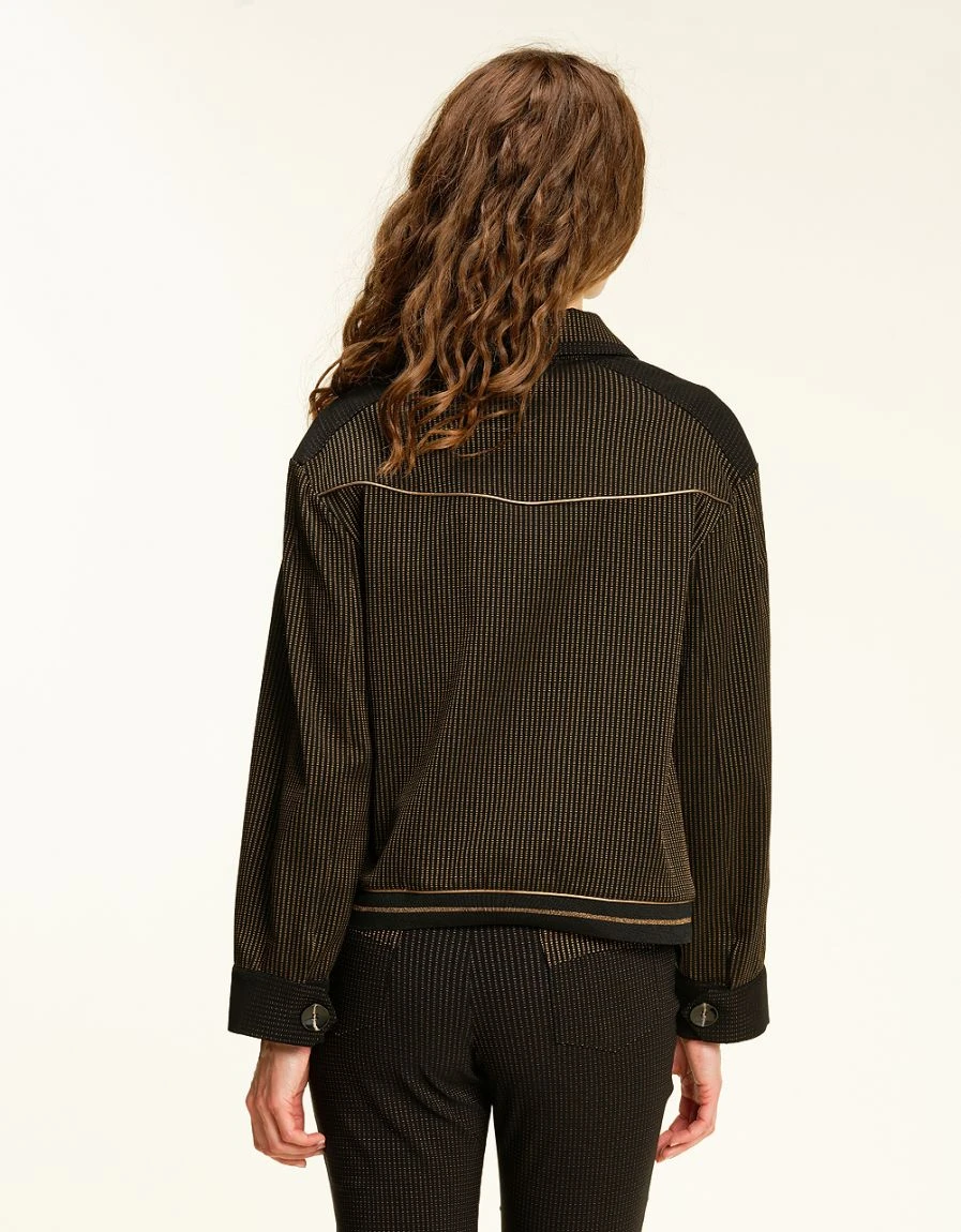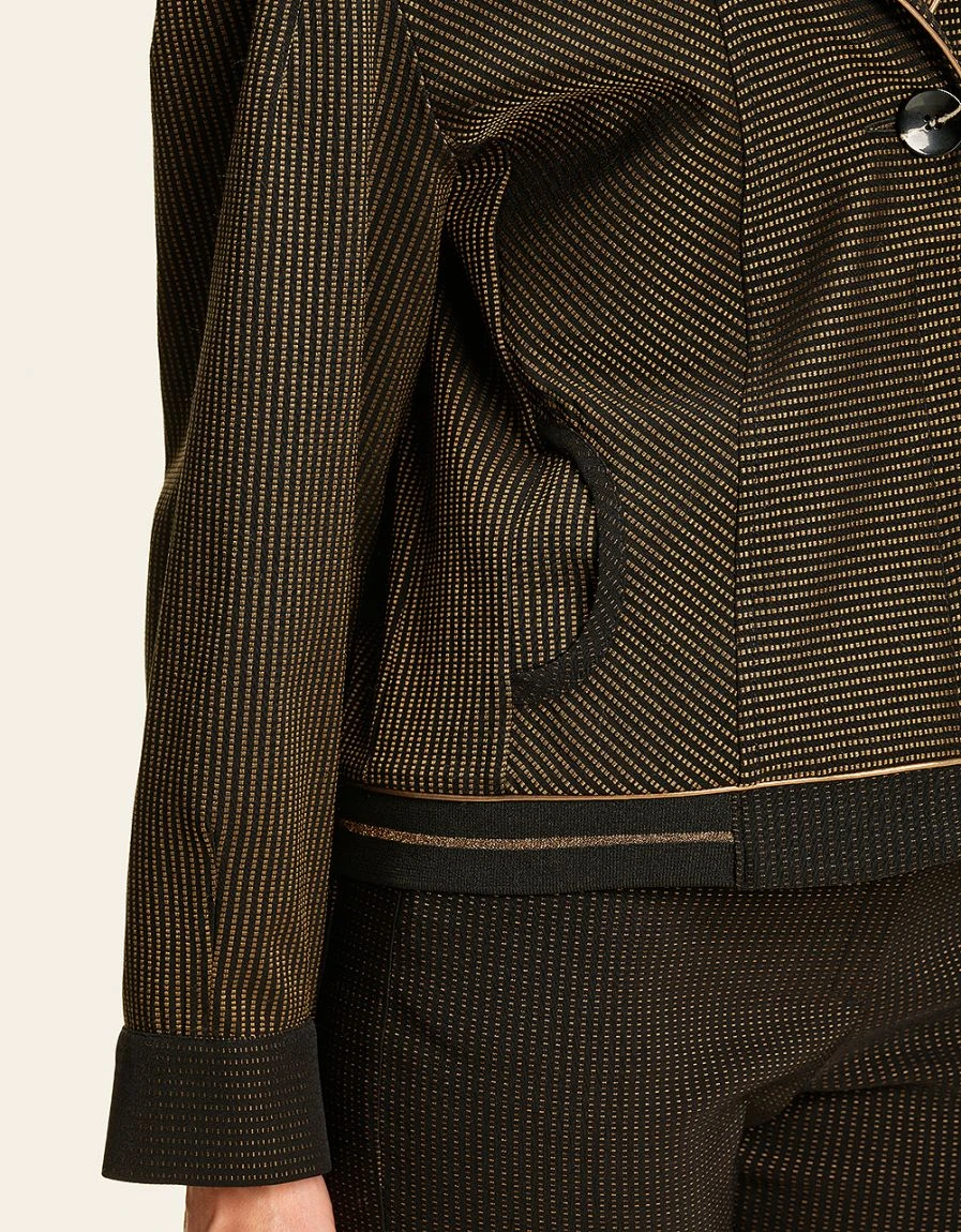 – Bord milieu devant, bas veste et empiècement dos souligné d’un liseret cuivre