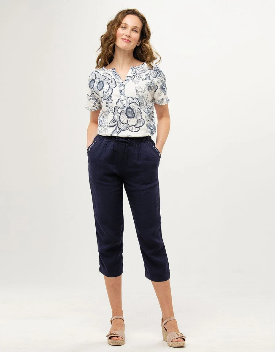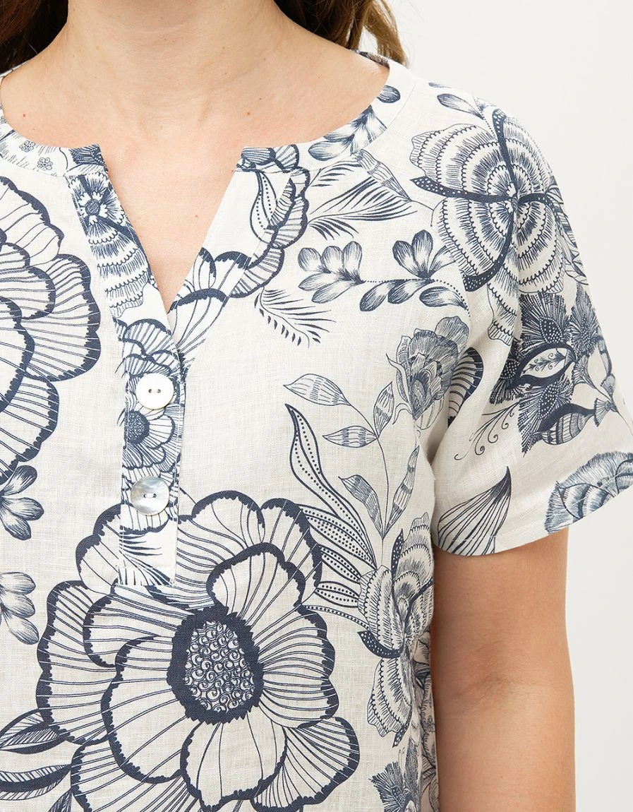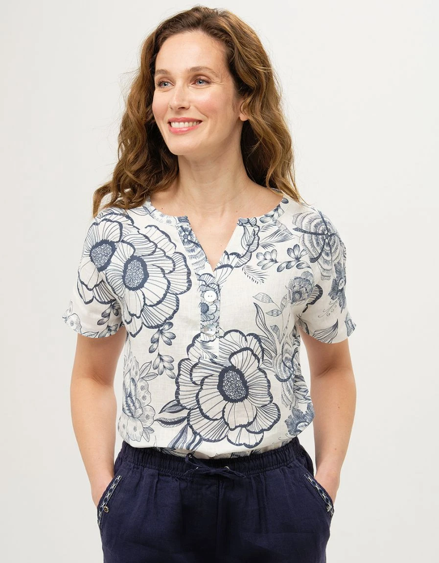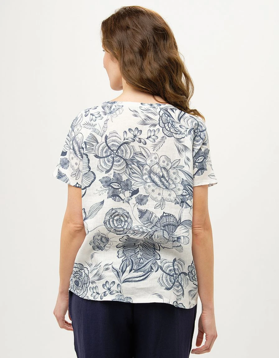 – Esprit « toile de Jouy » revisitée pour ce top en lin imprimé.