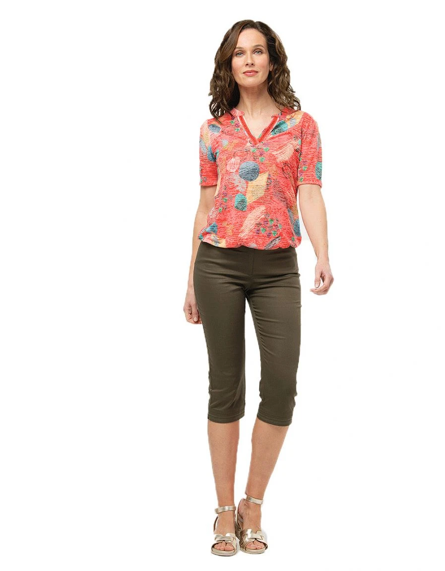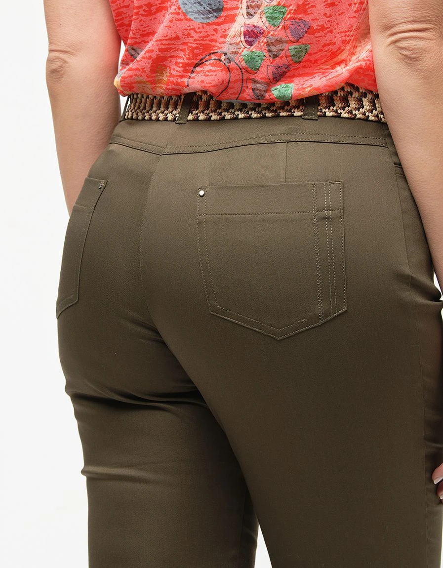 Quand les températures montent, les pantalons raccourcissent, c’est bien connu. Toutes celles qui trouvent les shorts trop audacieux vont craquer pour ce corsaire kaki, coupé dans une toile stretch très confortable. Zoom mode : le travail de surpiqures qui ornent le bas de pantalon.