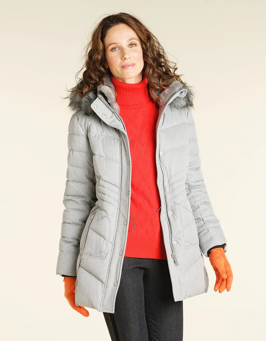 – Doudoune longue gris clair