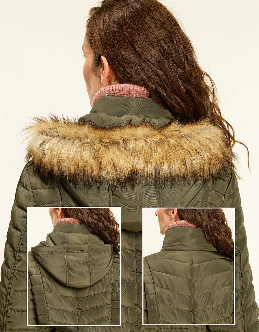 – Capuche et fausse fourrure amovible