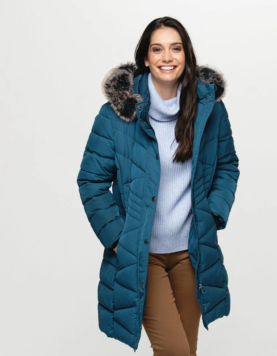 100% polyester. Fausse fourrure capuche : 100% acrylique. Poignet : 5% elasthanne, 95% coton