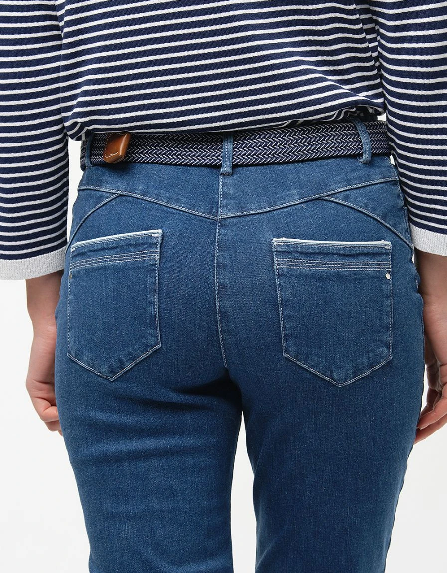 Bon pied, bon look avec ce jean à la coupe étudiée pour mettre en valeur vos formes. Il vous fait la jambe longue et son délavage est juste idéal pour le printemps. Détails mode : les surpiqûres blanches et le liseré qui souligne les poches.