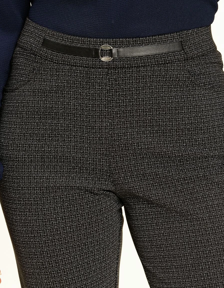 – Jegging 7/8 noir, petits motifs gris stretch