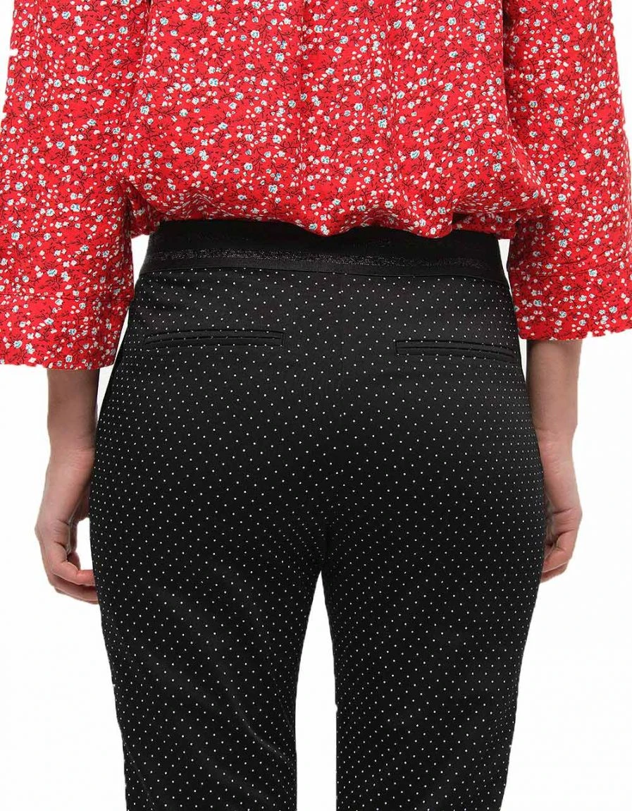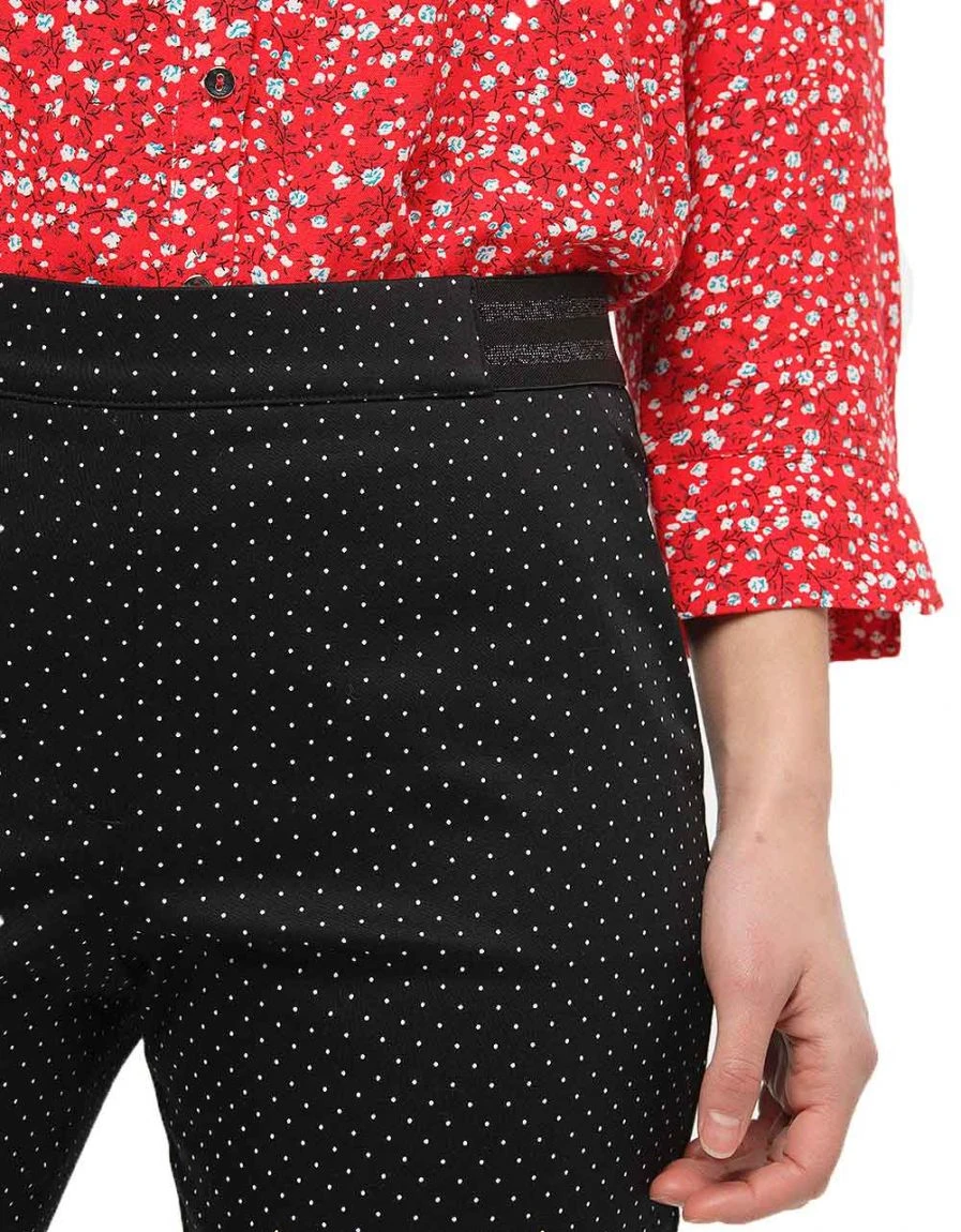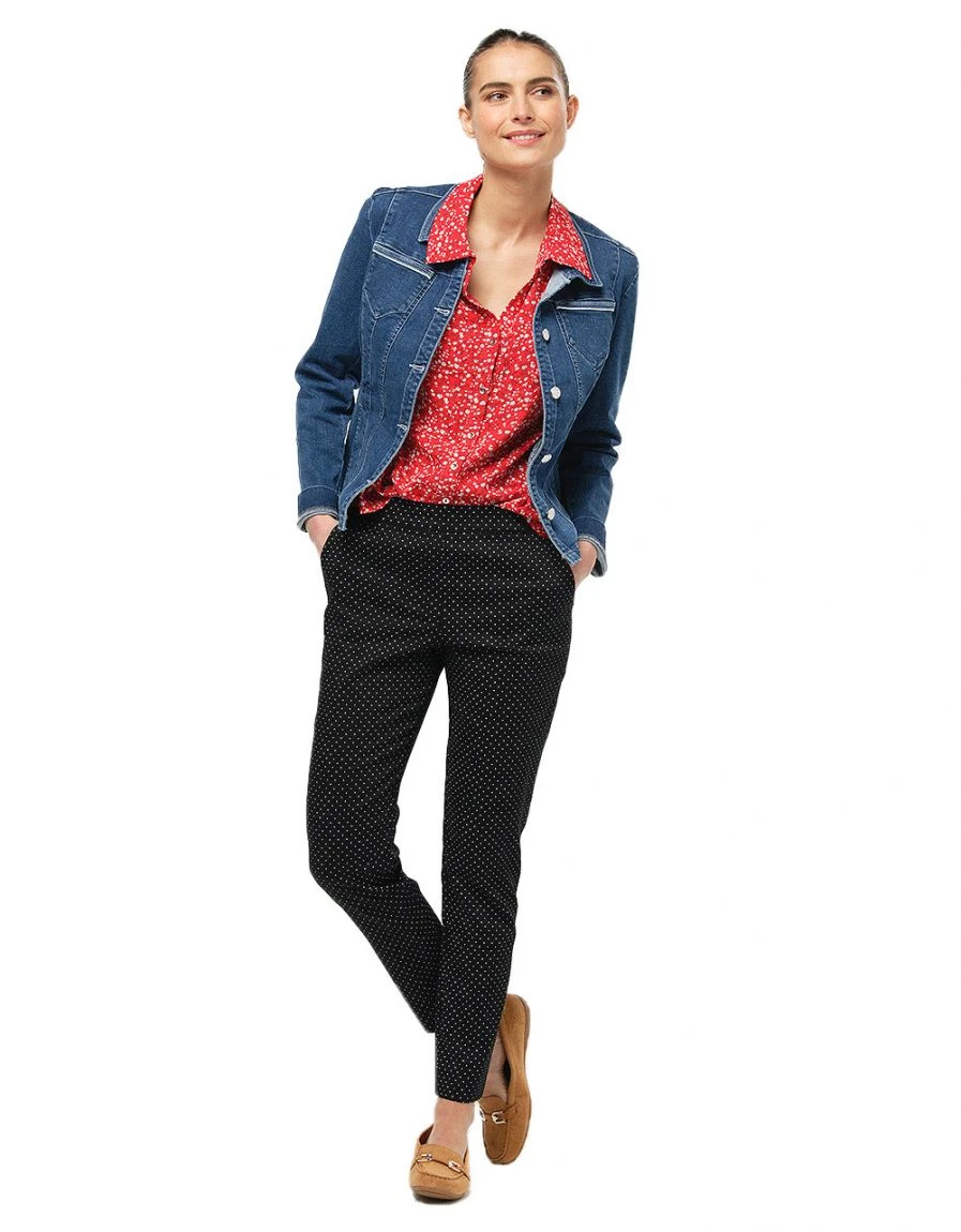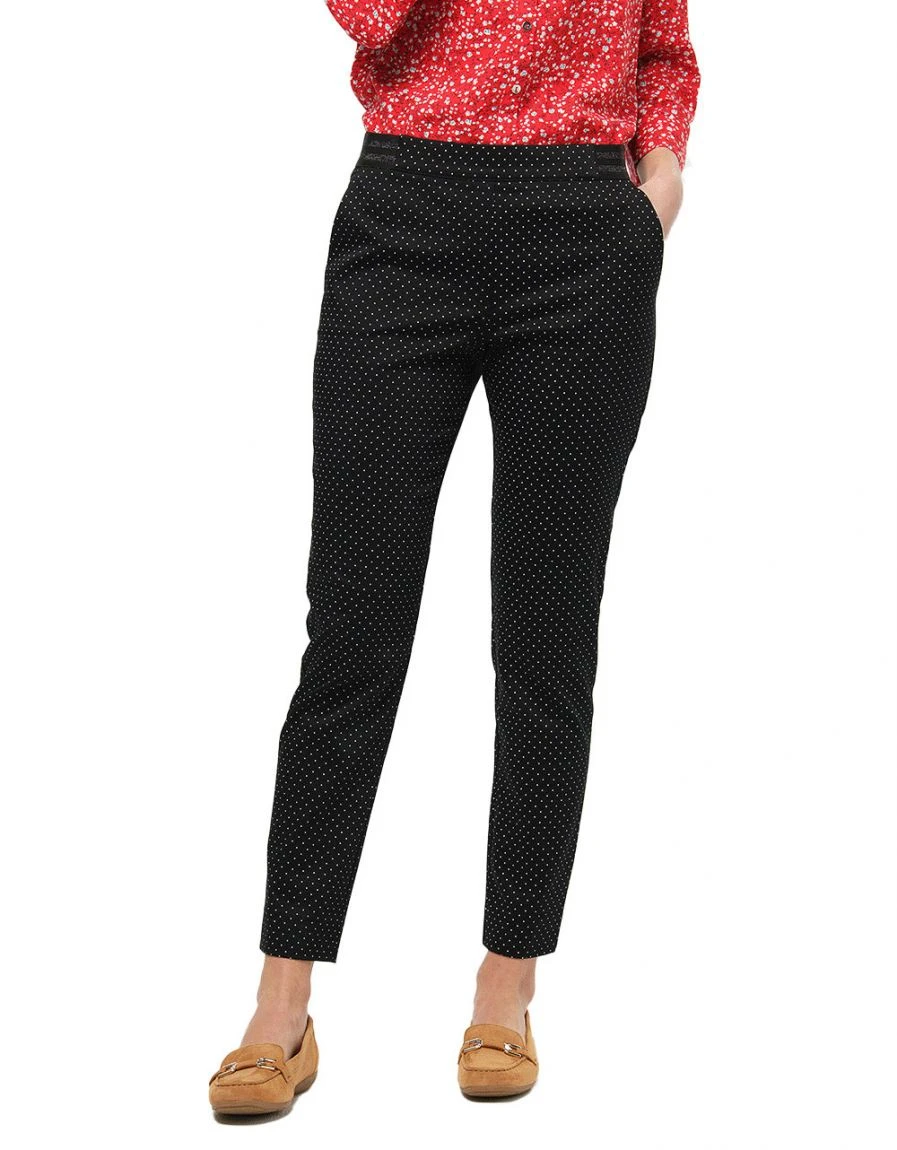– Tendance, le jegging façon chino à pois offre de multiples possibilités d’association.