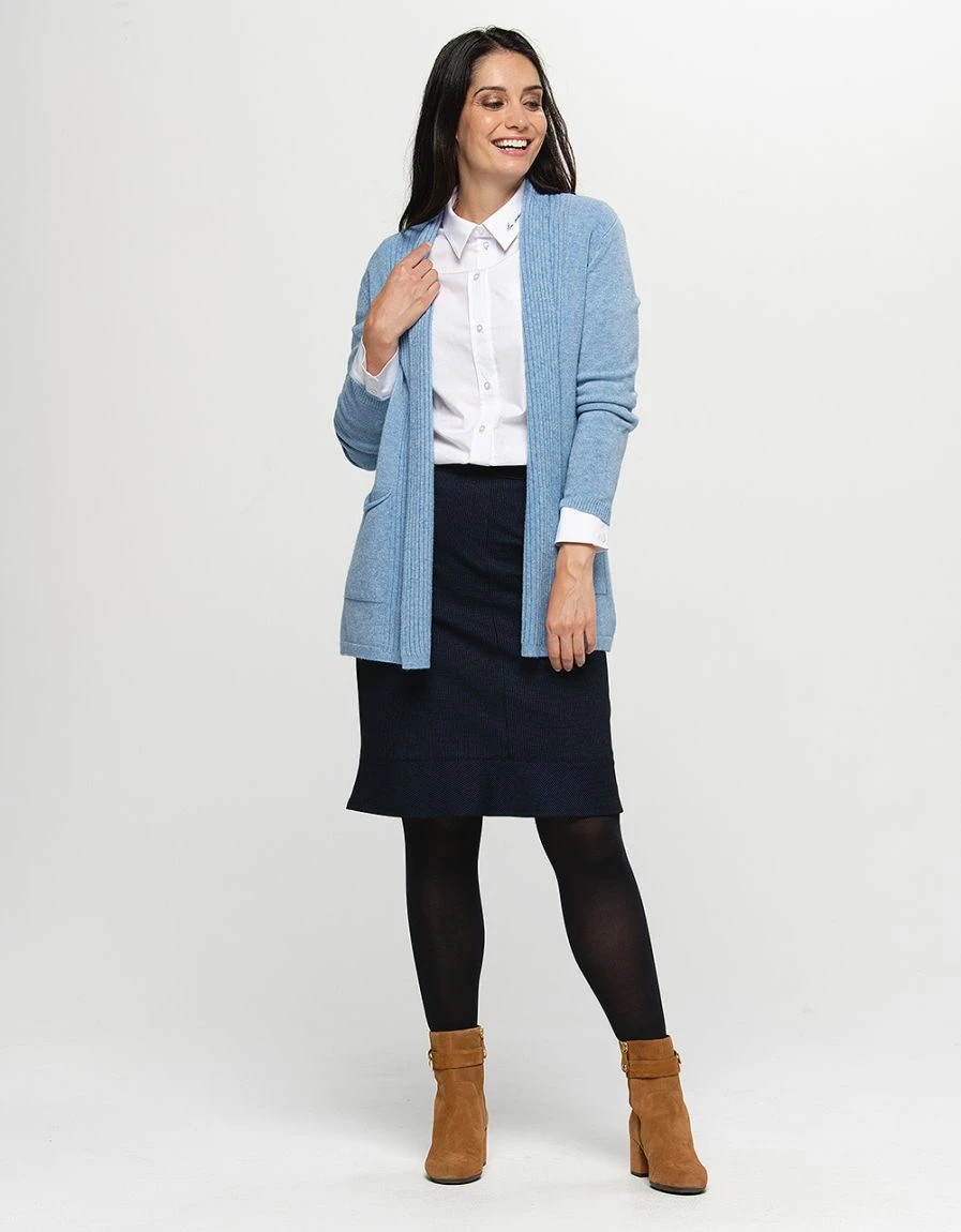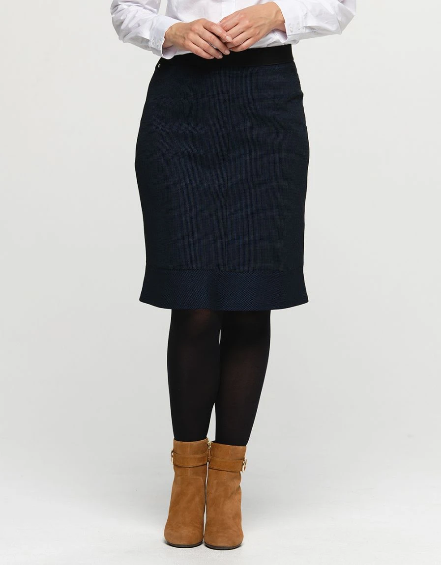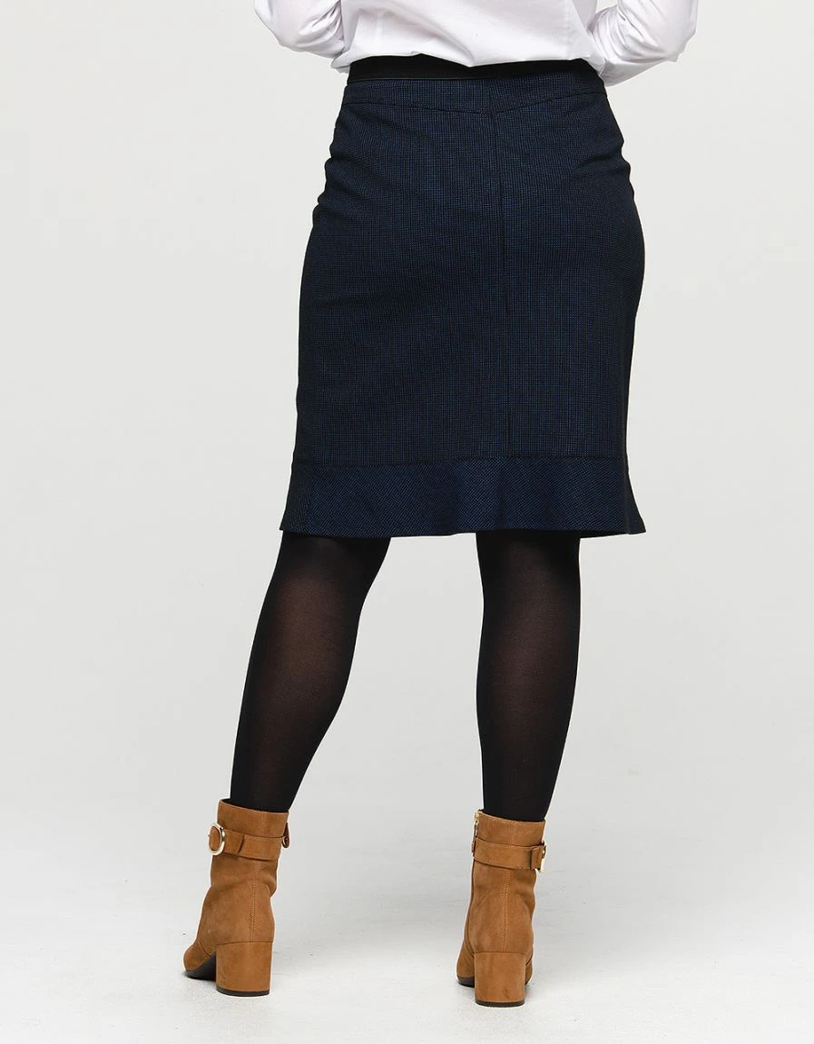 – Jupe chic noire, petits motifs bleu