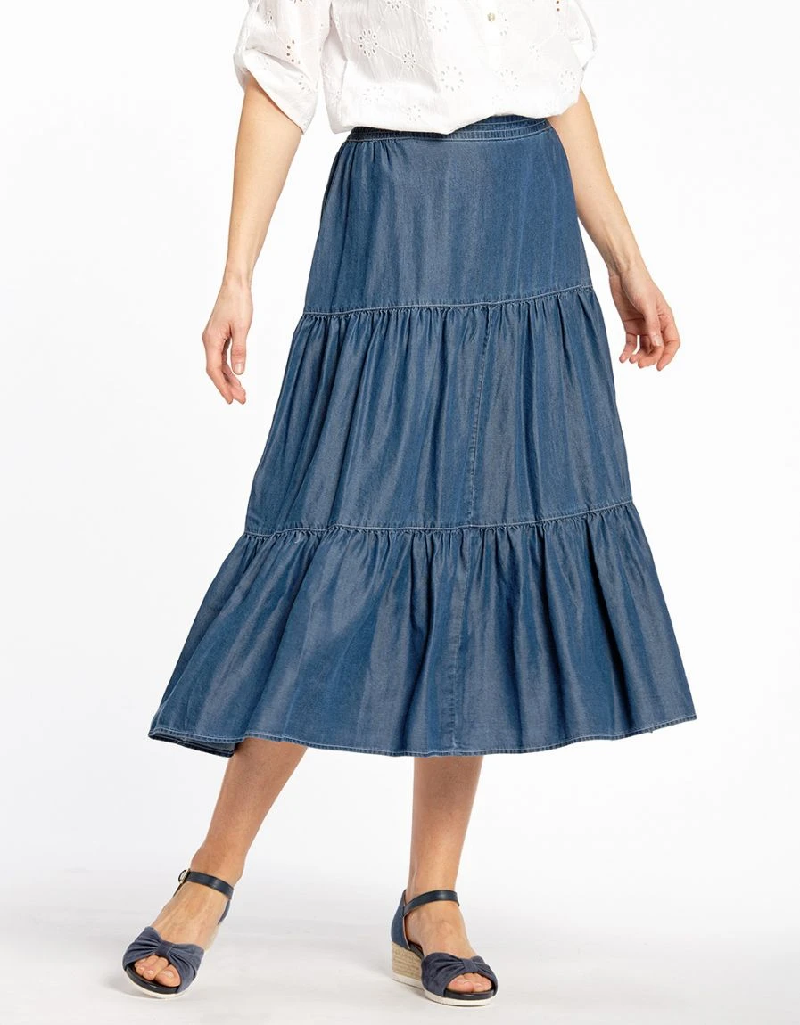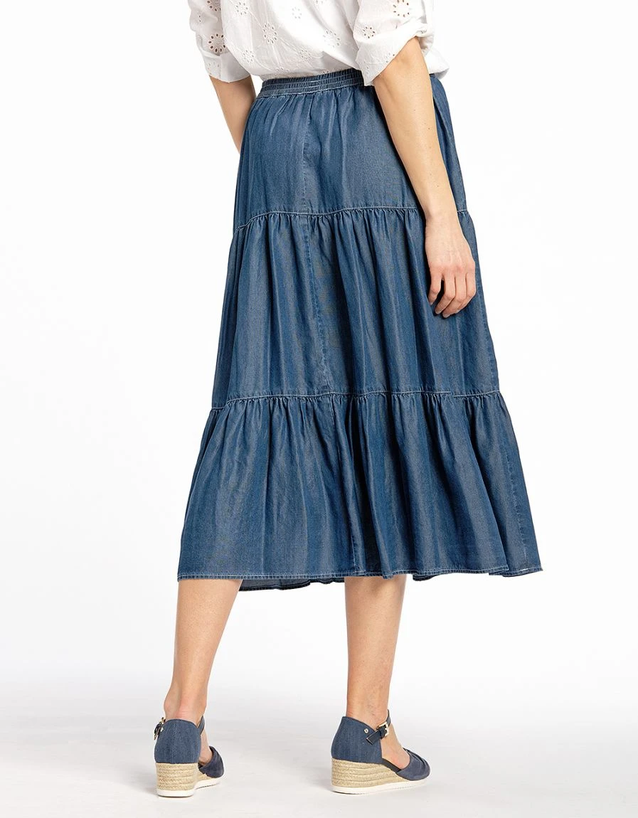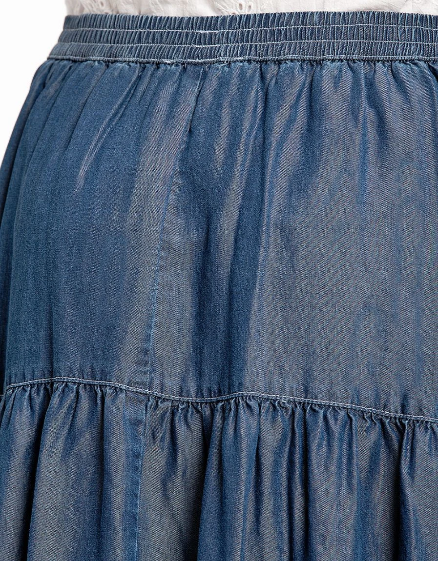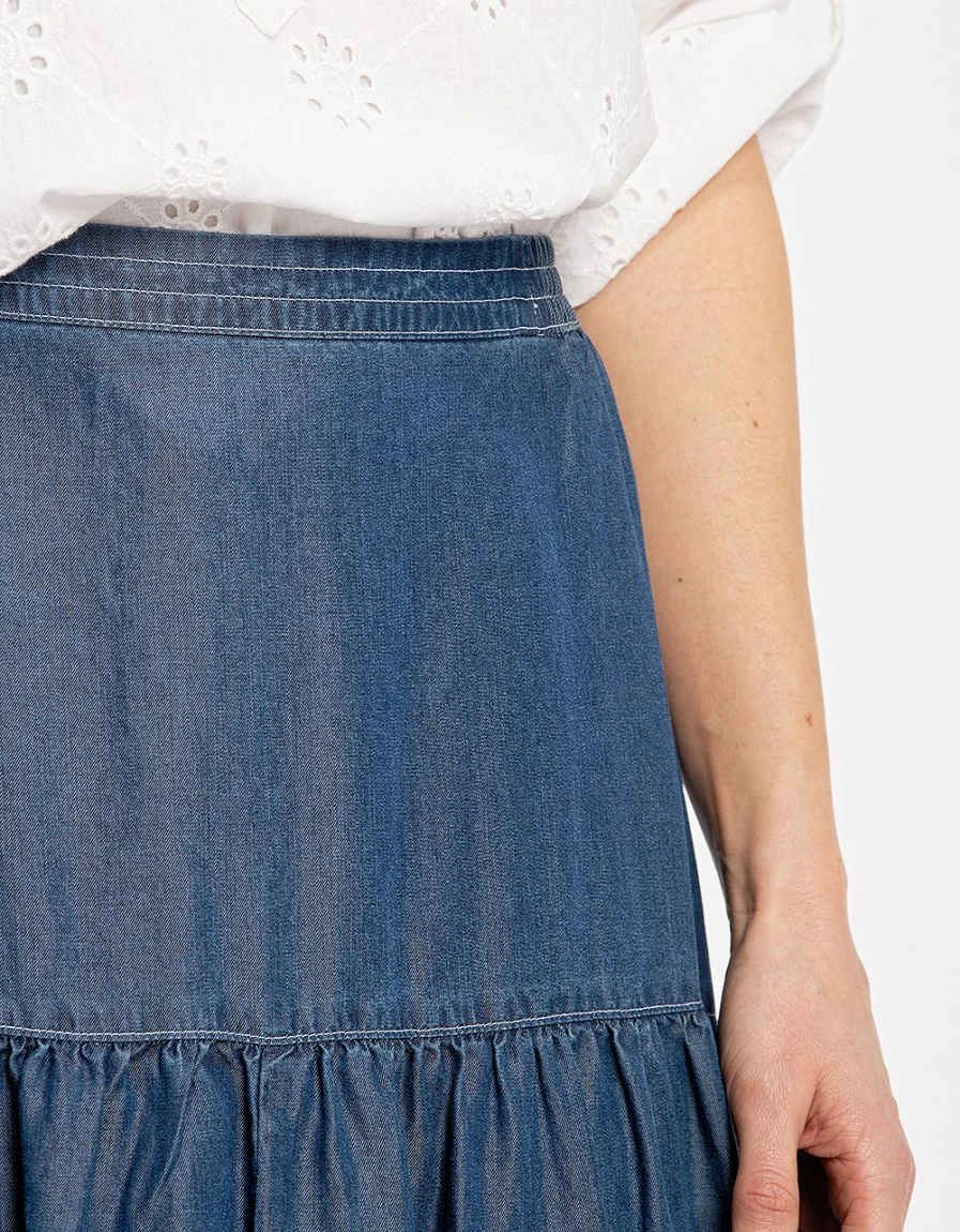 – Jupe longue à volants en Lyocell bleu stone