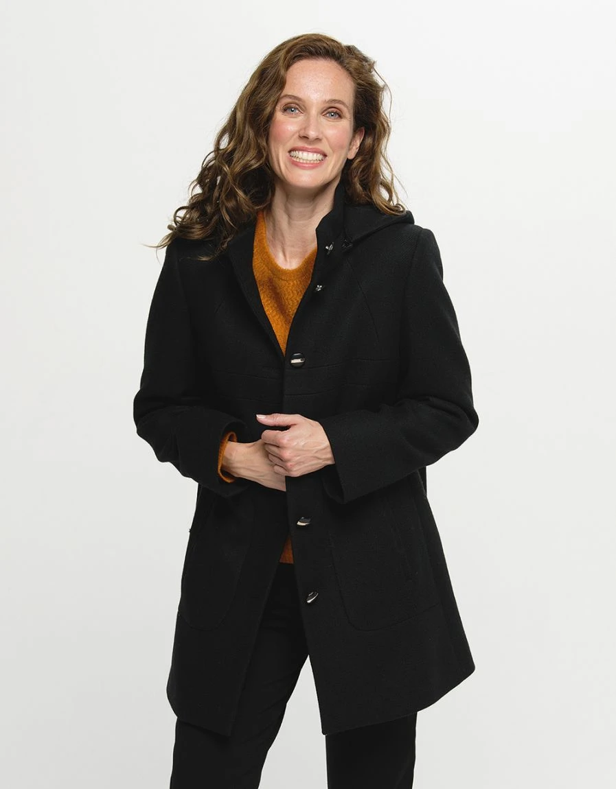 – Manteau noir 70% laine