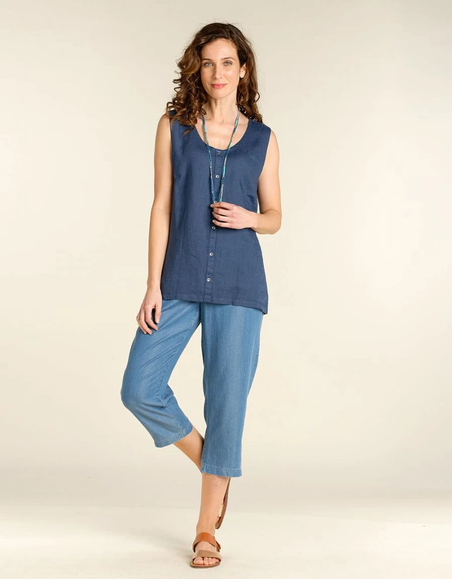 – Pantacourt fluide 100% LYOCELL bleu stone