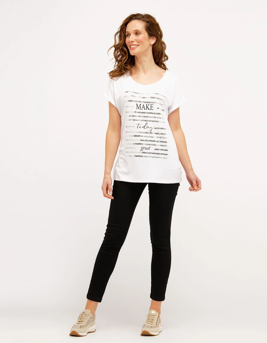 – Une coupe slim parfaite avec le confort de la taille élastiquée (effet ventre plat)