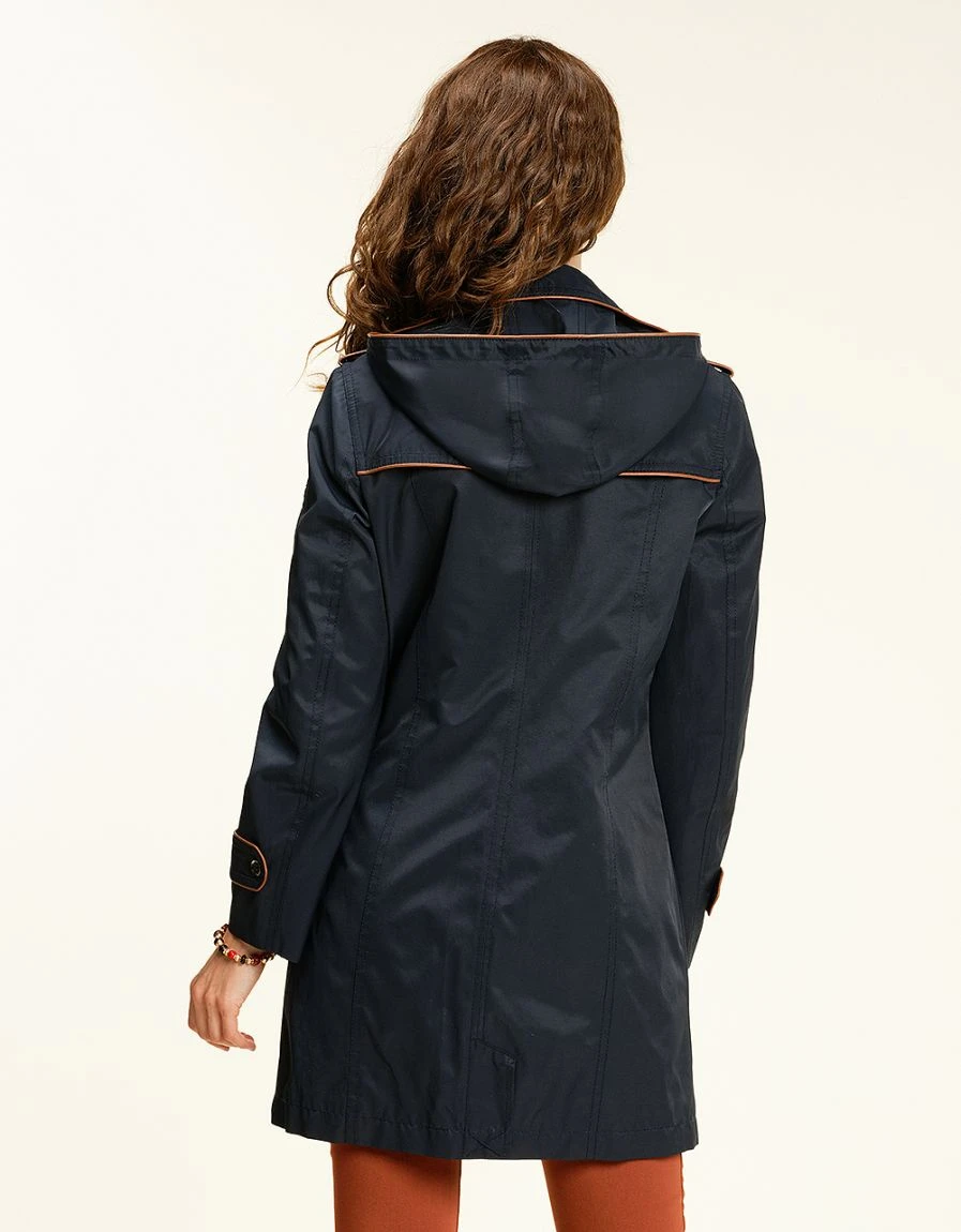 – Parka Trench mi-long bleu marine réhaussé de biais en similicuir marron