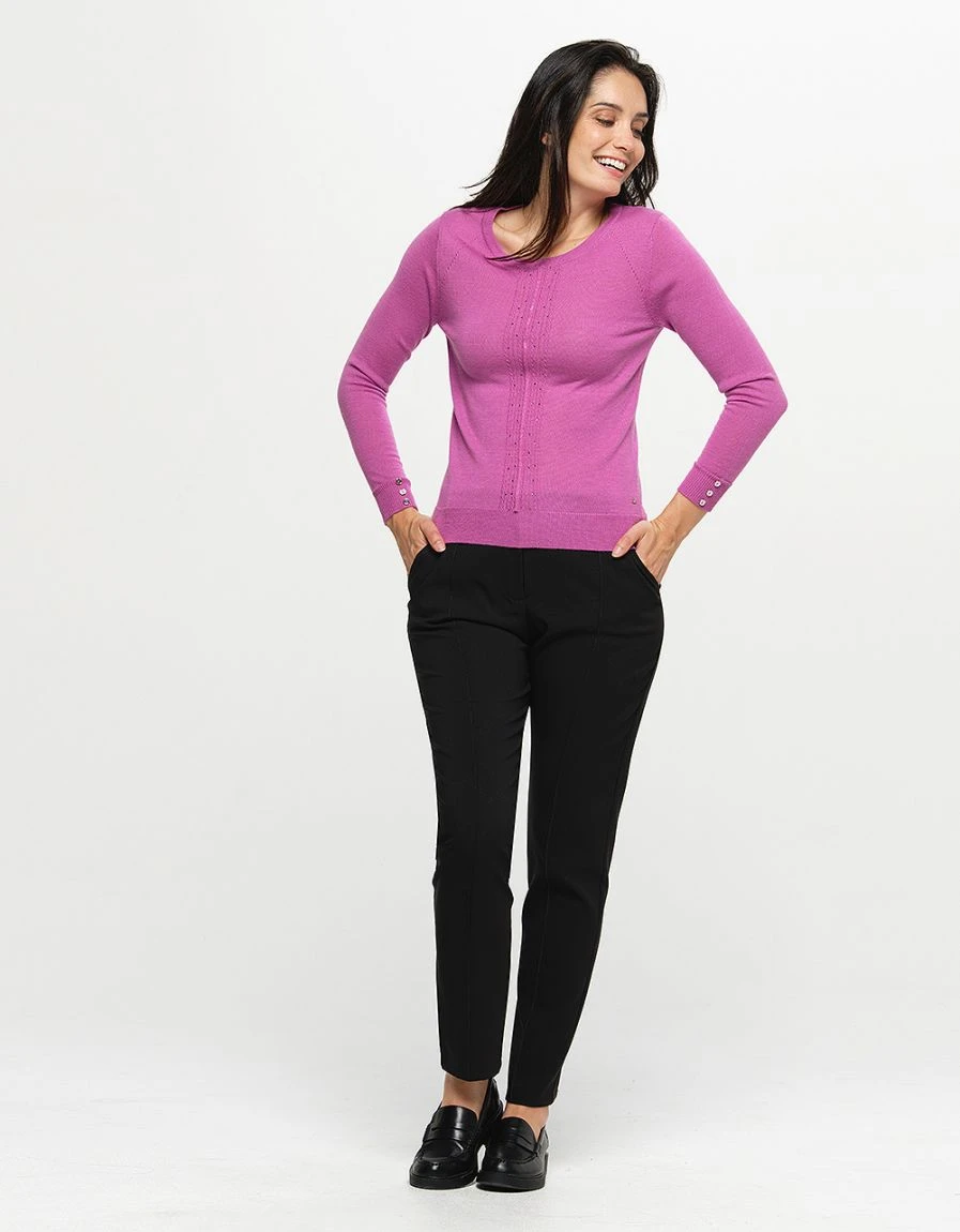– Jeu de maille fantaisie avec strass et fils métallisés pour un effet légèrement brillant