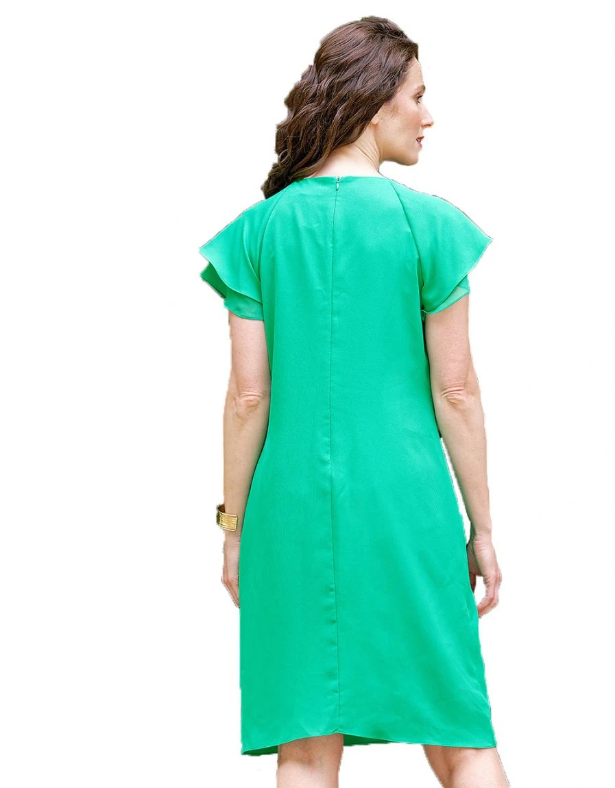 – Robe doublée habillée en voile vert vif