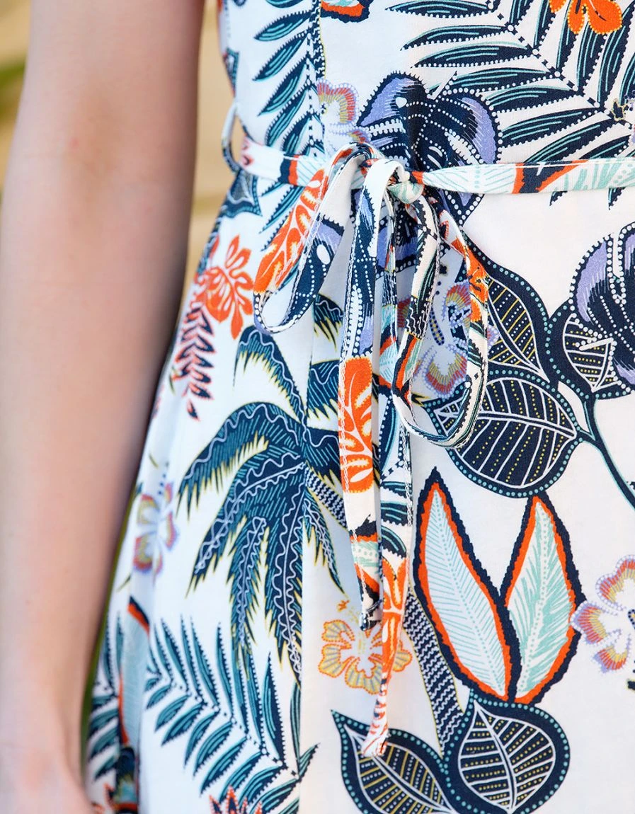 – Robe jersey 100% coton, imprimée feuillage marine et