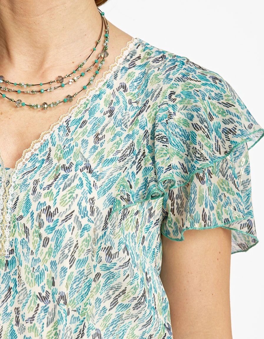 – Imprimé bucolique légèrement irisé, retrouvez le avec la blouse D0228 !