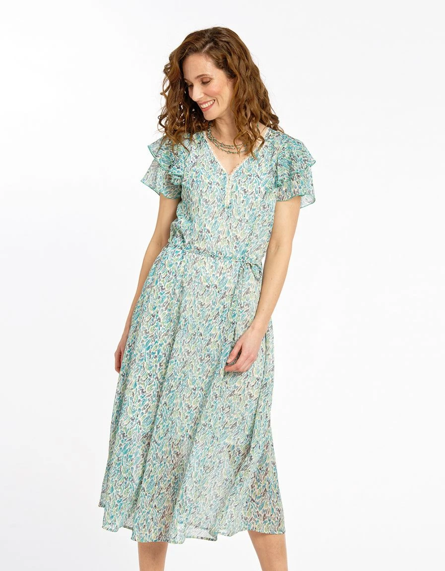 – Robe longue doublée en voile vert