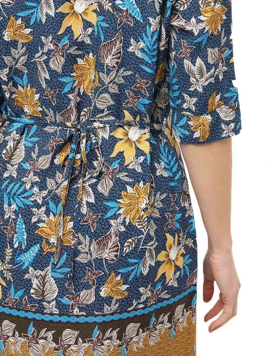 – Robe bleue à motifs floraux.