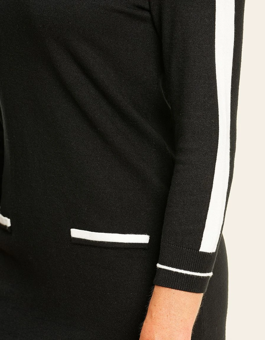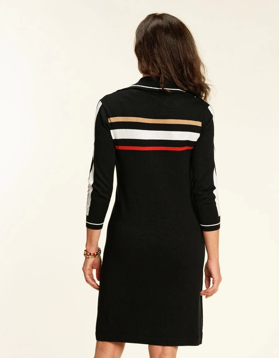 – Robe pull bleue noire rayée orange, blanc et rouge