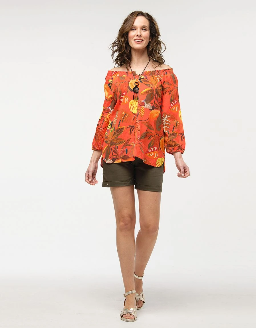 Osé mais tendance, on mixe le short kaki avec le pull rose (23ED4440077) agrémenté de l’écharpe multicolore (23EC9082005) mais on peut aussi donner une touche plus élégante avec le top imprimé rouge (23ED4185037) … A vous de jouer !
