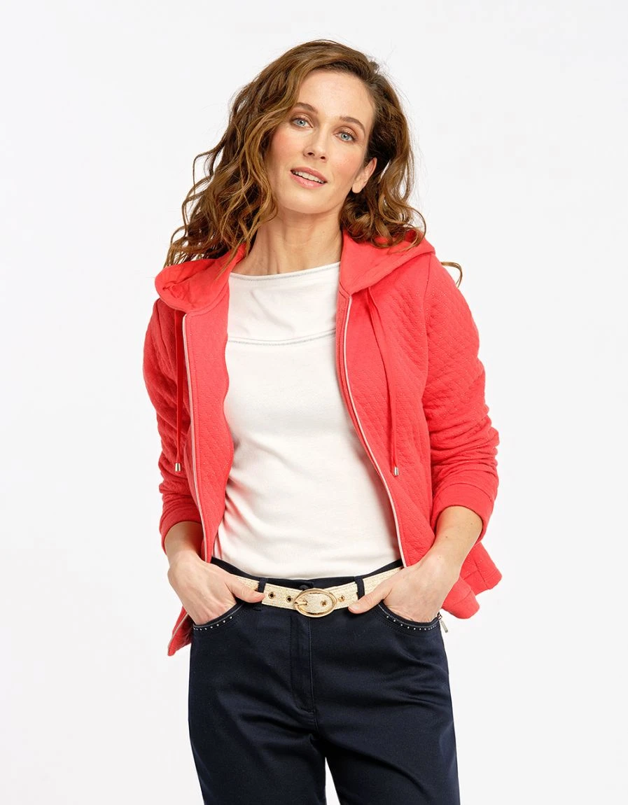 49% polyester, 2% fibres metallisees, 49% coton. Capuche : 96% viscose, 4% elasthanne